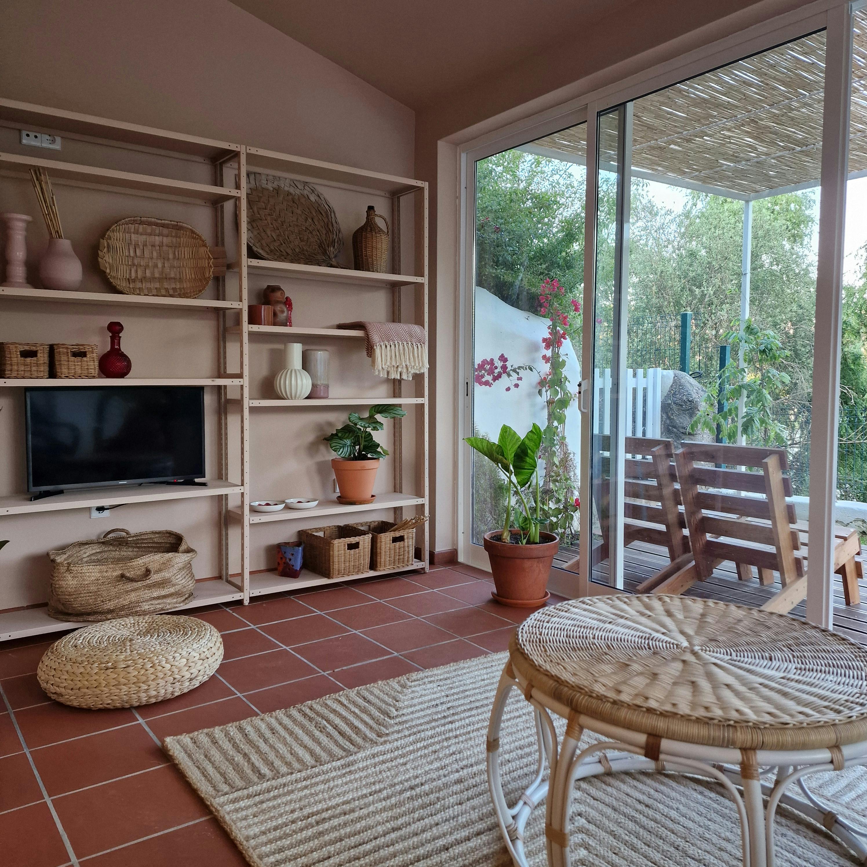 A casa respira um ambiente cuidado e muito confortável atribuído pelas cores e texturas, onde se destacam as tapeçarias e as cerâmicas de artesãs locais, assim como pelas peças com história às quais foi dada uma nova vida com o propósito de encantarem e tornarem ainda mais convidativa esta experiência inesquecível.