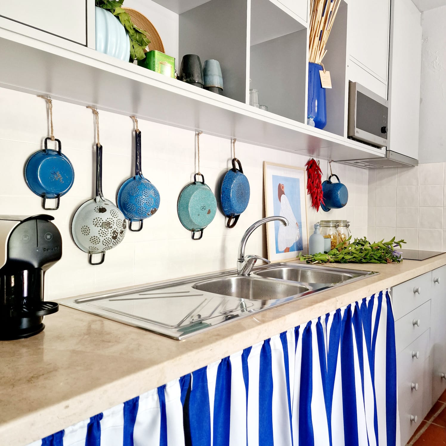 Inspired by the royal blue of nautical stripes that adorn the textiles, the design perfectly balances the spirit of the place with the comfort of your stay. The decor, highlighted by hand-painted artwork, tapestries, and the traditional Constância ceramic dolls crafted by local artisans, as well as the furniture and historical pieces throughout the space, reflects a deep commitment to celebrating local craftsmanship. This vibrant tribute ensures that guests enjoy a memorable stay and a unique, enriching experience.